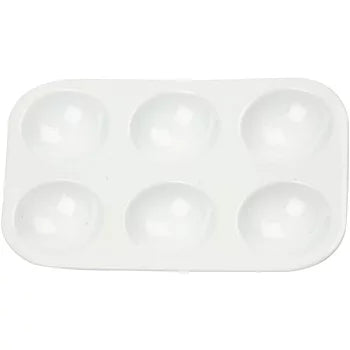 Muovinen väripaletti, jossa kuusi kuppia. Paletin koko 8 x 12 cm.