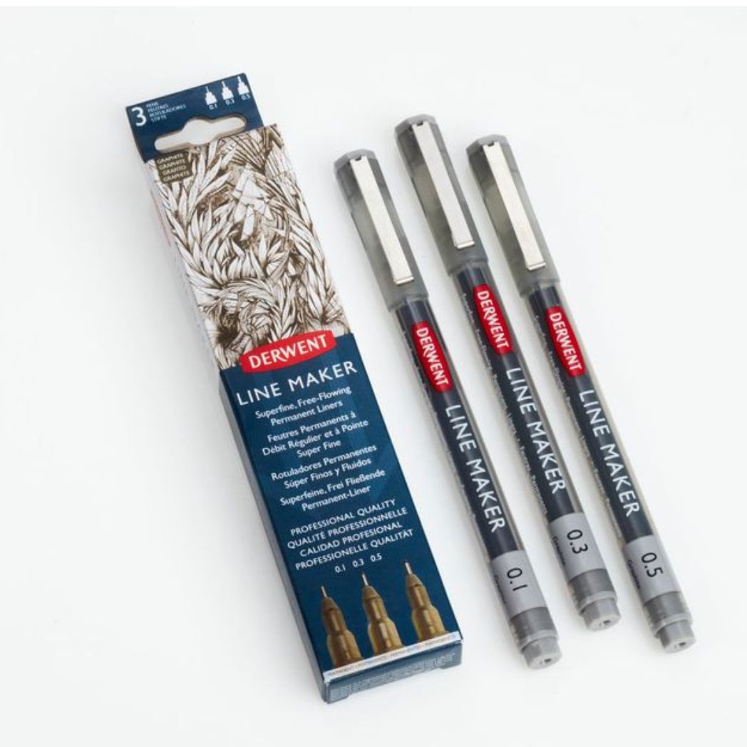 Derwent Line Maker-tussit taiteentekoon ja kuvitukseen. Line Maker ja Paint Pen-tussit ovat liuotinvapaat, vesipohjaisen pigmentin omaavat tussit, joiden pigmenttimuste on pysyvää ja arkistokelpoista. Soveltuu niin piirtämiseen kuin kirjoittamiseenkin.