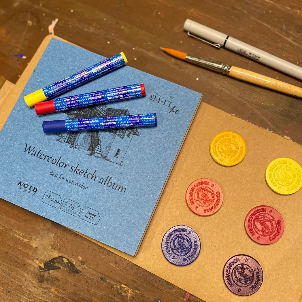 - Wennströmin kotimaiset vesivärit, 9 väriä (kuvassa olevan värivalikoiman lisäksi musta, valkoinen ja ruskea)