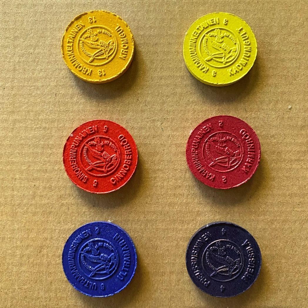 Art-Hub pahvikansiossa on 6 väriä, krominkeltainen, kadmiuminkeltainen, preussinsininen, ultramariininsininen, sinoberinpunainen, karmiininpunainen.